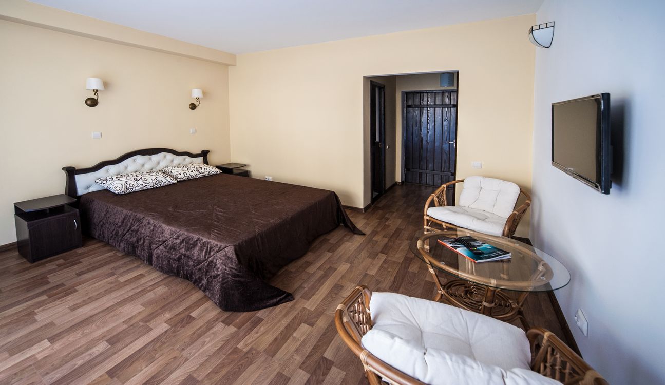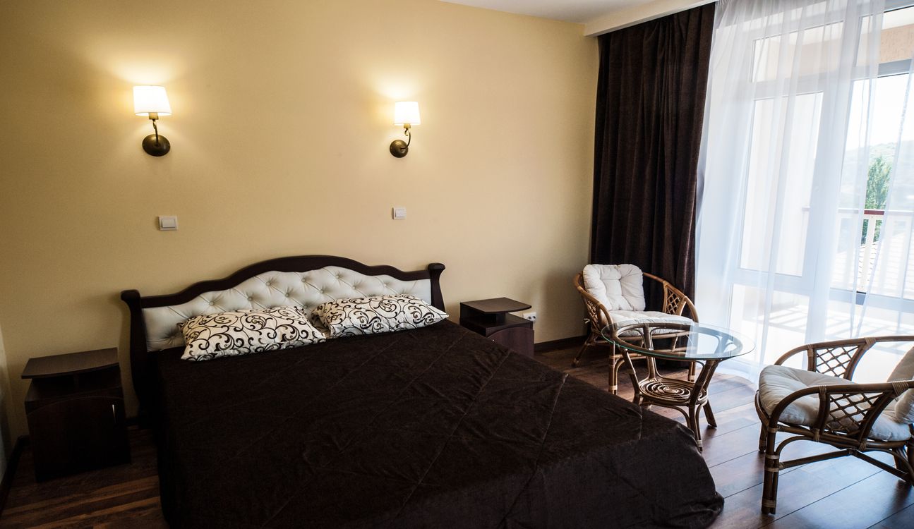 Отдыхали в этом отеле в сентябре 2013года с мужем и друзьями. Все очень понравилось! Персонал приветливый, ежедневная уборка номера, номер стандарт очень комфортный. Любим путешествовать на машине, поэтому нам было удобно добираться до моря, а так же до Судака и Нового Света. На пляже не очень людно, так как только отдыхающие на машинах. Зеленогорье — место очень спокойное и красивое! Есть что посмотреть и просто отдохнуть душой и телом. Мужу особенно понравился бассейн, в который он уже с утра нырял). А мне понравилось расположение отеля! Весь поселок окружен горами!!! Мечтаю снова туда приехать теперь уже с сынулей!